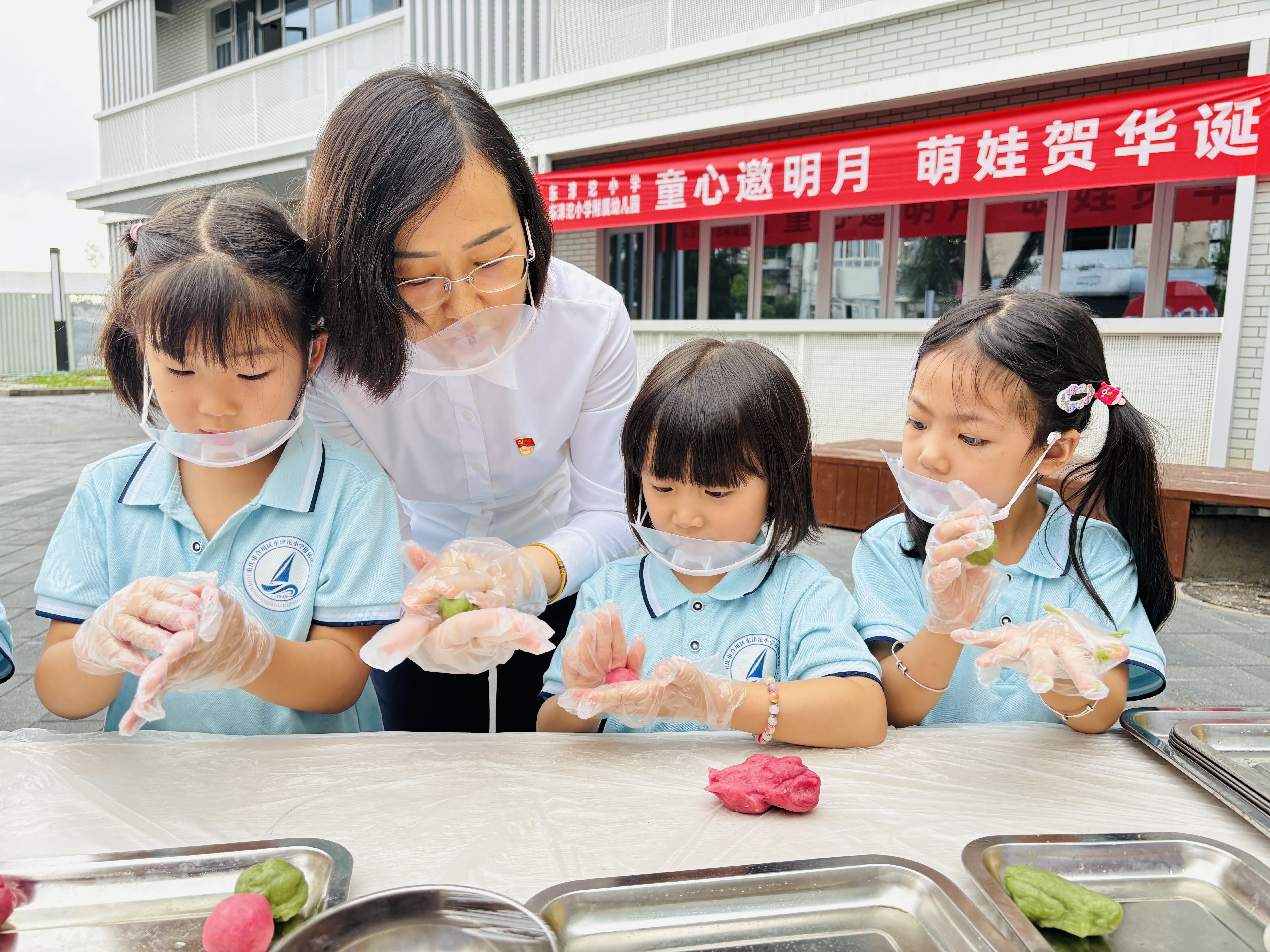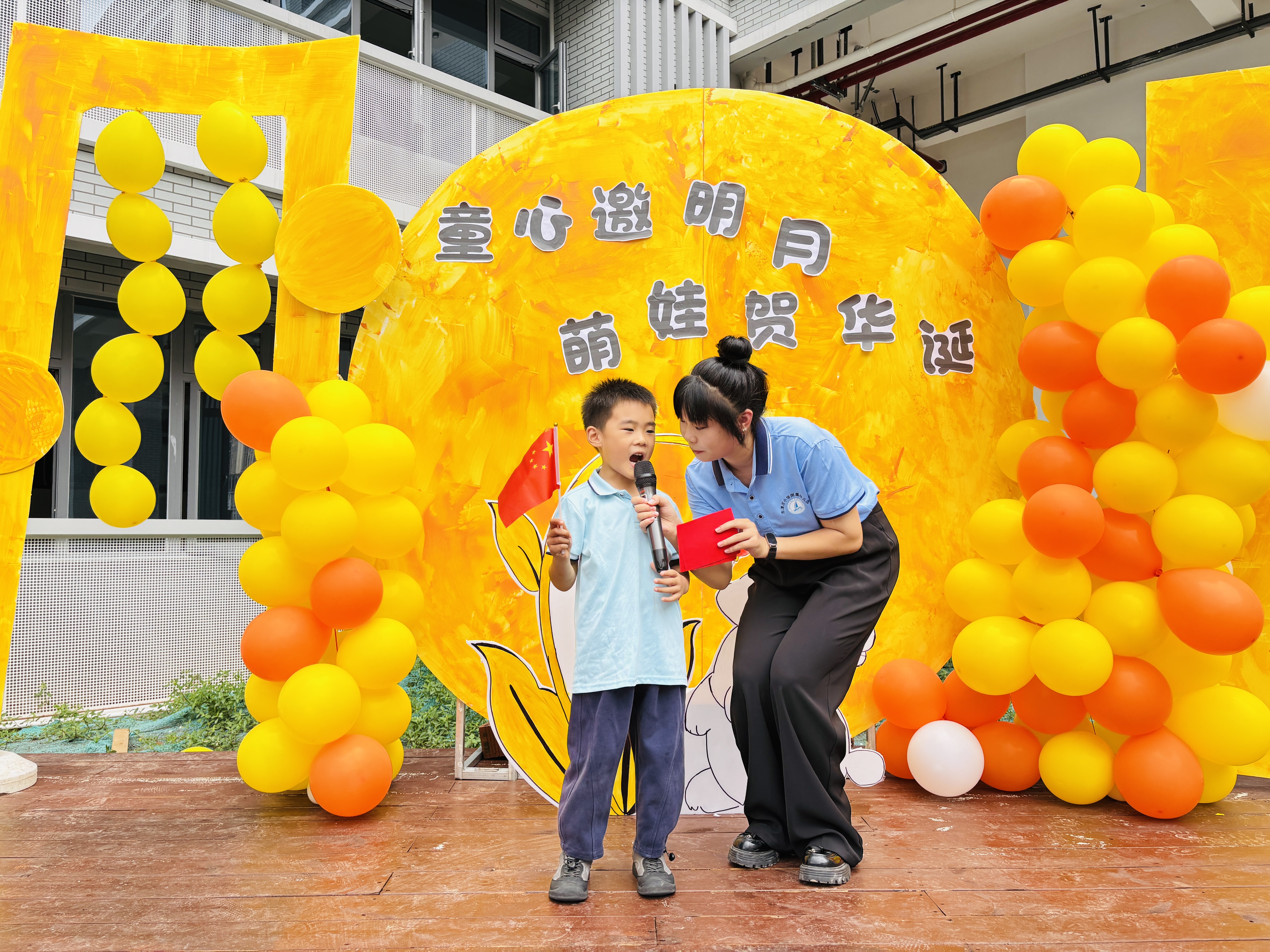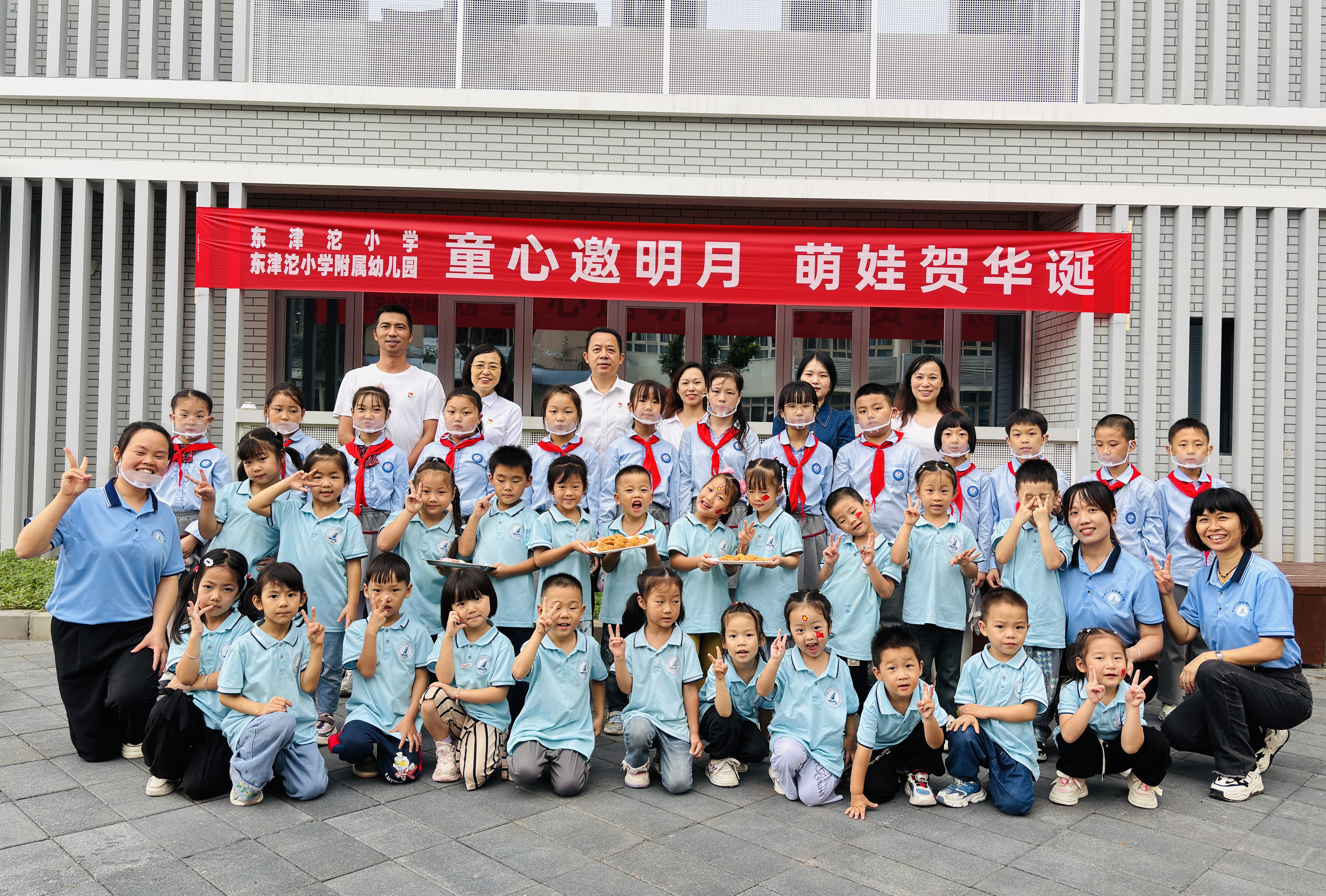 金秋送爽迎华诞,丹桂飘香庆中秋。在中秋节与国庆节双节来临之际,9月30日,东津沱小学及附属幼儿园开展“童心邀明月.萌娃贺华诞”主题活动,让孩子们在欢声笑语中感受家国情怀,共庆美好佳节。