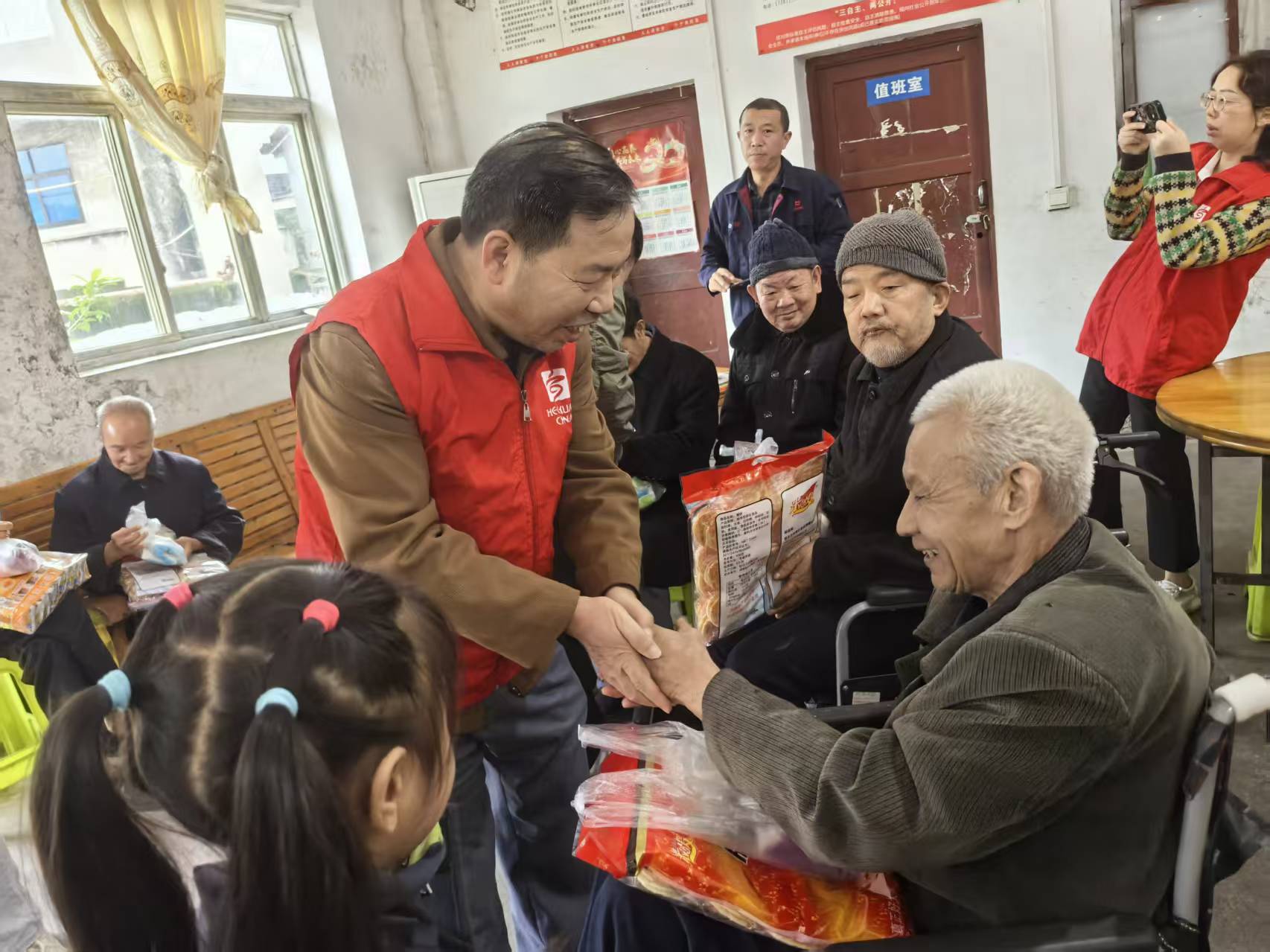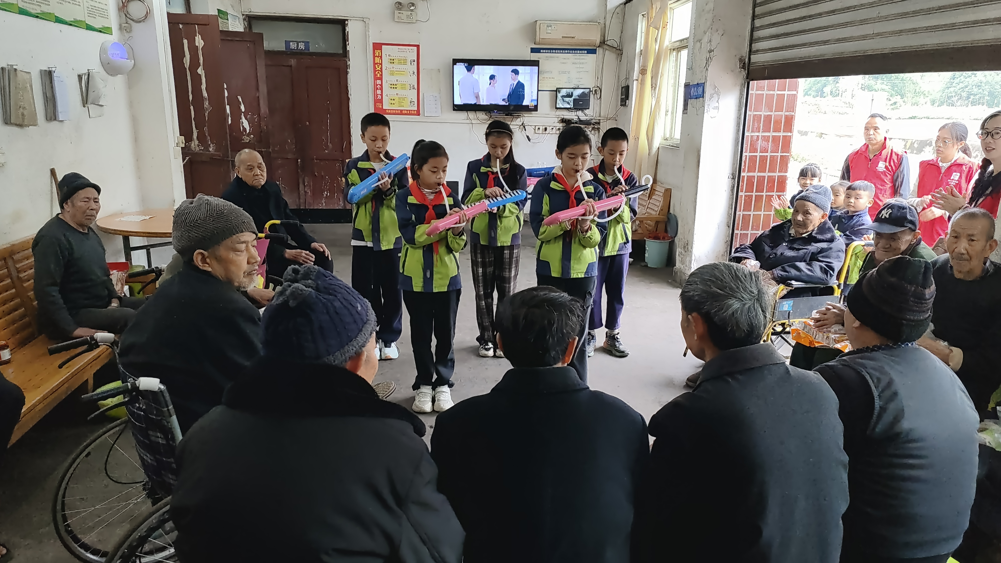活动现场,教师们为老人送去洗脸巾、面包,表达最诚挚的关怀与祝福;孩子们则用精彩的表演传递温暖。活力四射的舞蹈,洋溢着朝气;悠扬的口风琴声,不绝于耳,老人喜笑颜开,幸福满满。表演结束后,孩子们围在爷爷奶奶的身旁,用稚嫩的小手给爷爷奶奶捶背按摩、打扫房间……整个养老院被浓浓的温情所包裹。