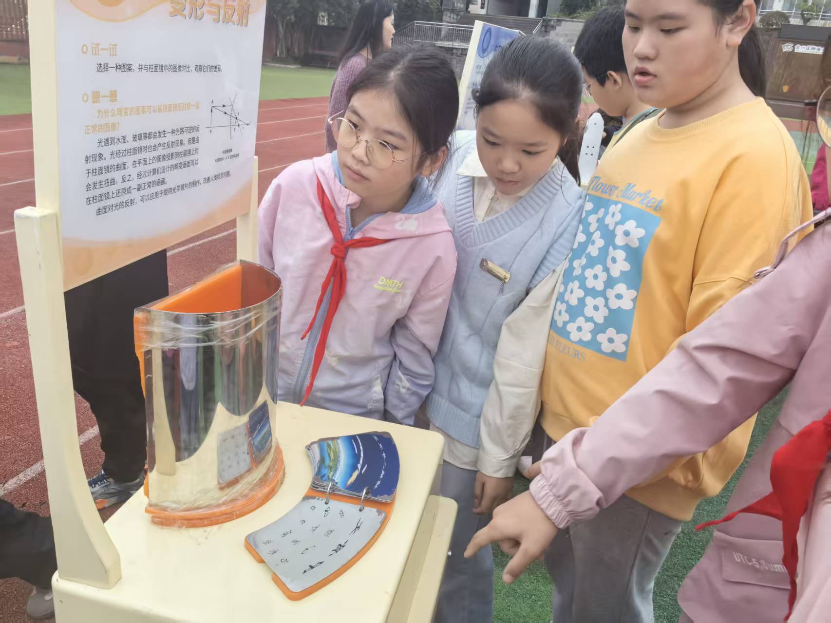 活动现场,伯努利星环、变形与反射动、视错觉钟等趣味炫酷的前沿科技展示引得孩子们惊叹连连。志愿者耐心讲解实验的原理,并指导学生动手实践,零距离感受科技的神奇与魅力。此次活动不仅拓宽了乡村学生的科学视野,点燃了孩子们探索科学的热情,还在他们心中播下了创新思维的种子。