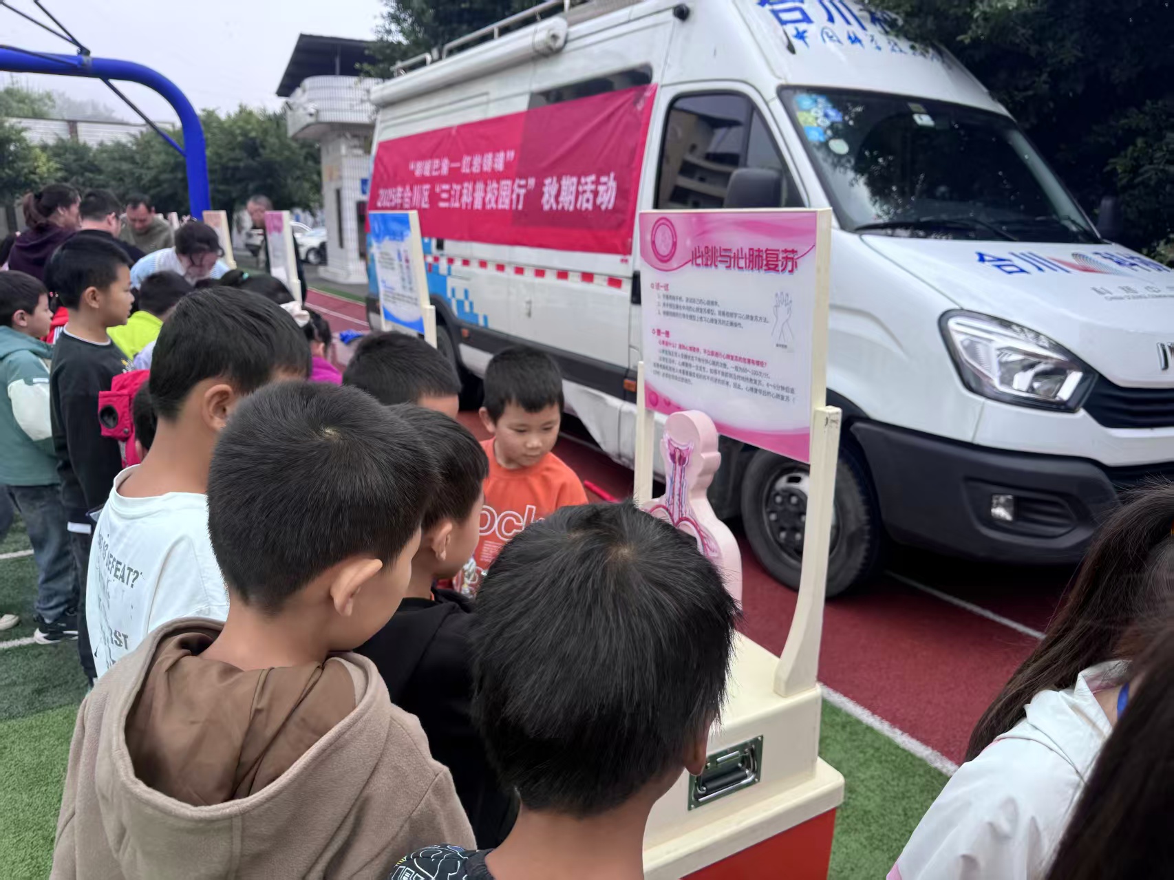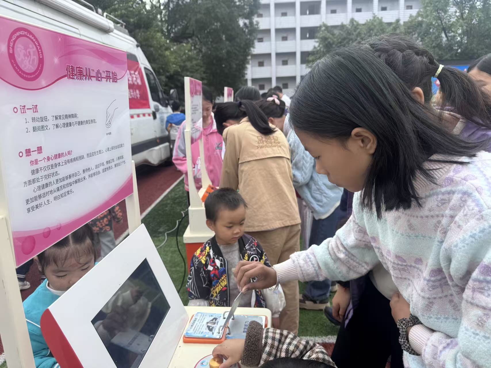 现场热闹非凡,“视觉错觉墙”前,孩子们指着“转动”的静止图片惊呼;听诊器里的心跳声让他们既紧张又兴奋;“可乐泡鸡蛋”实验中,变软的蛋壳让孩子们瞪大双眼。