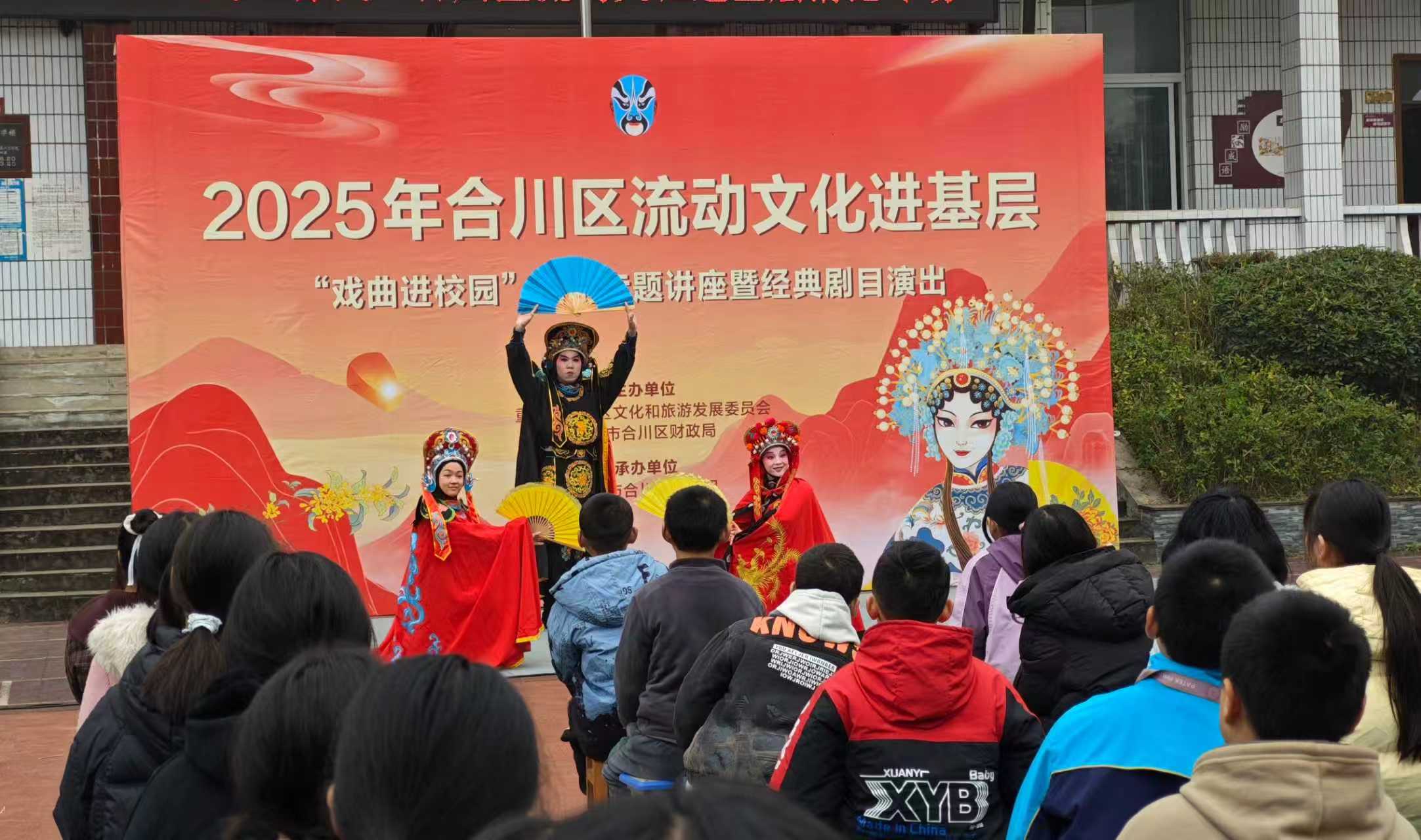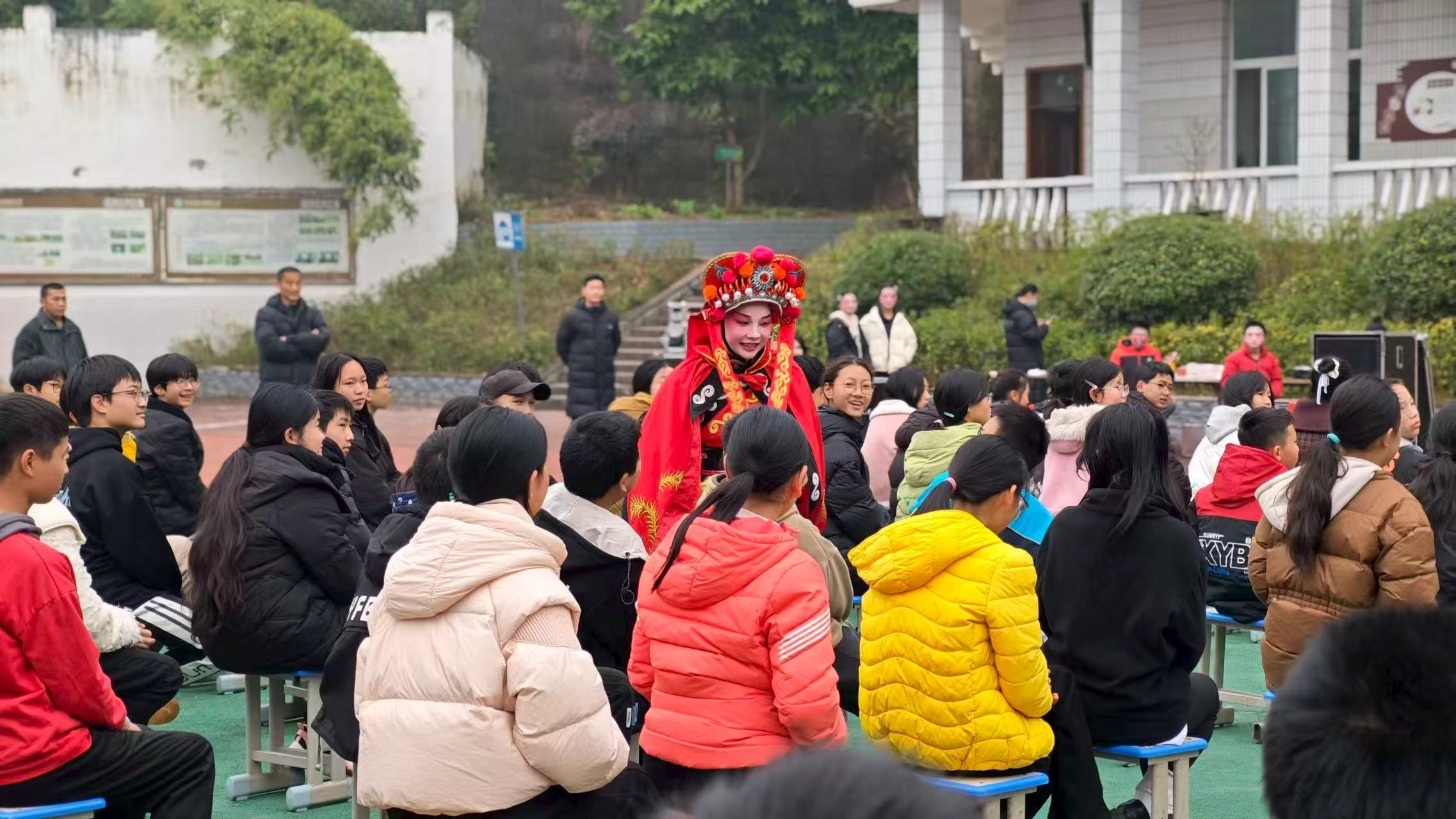 为弘扬中华优秀传统文化,丰富学生课余文化生活,近日,2025年合川区流动文化进基层“戏曲进校园”暨渭沱镇“扫黄打非”进基层宣传文艺演出活动在渭沱中学举行。