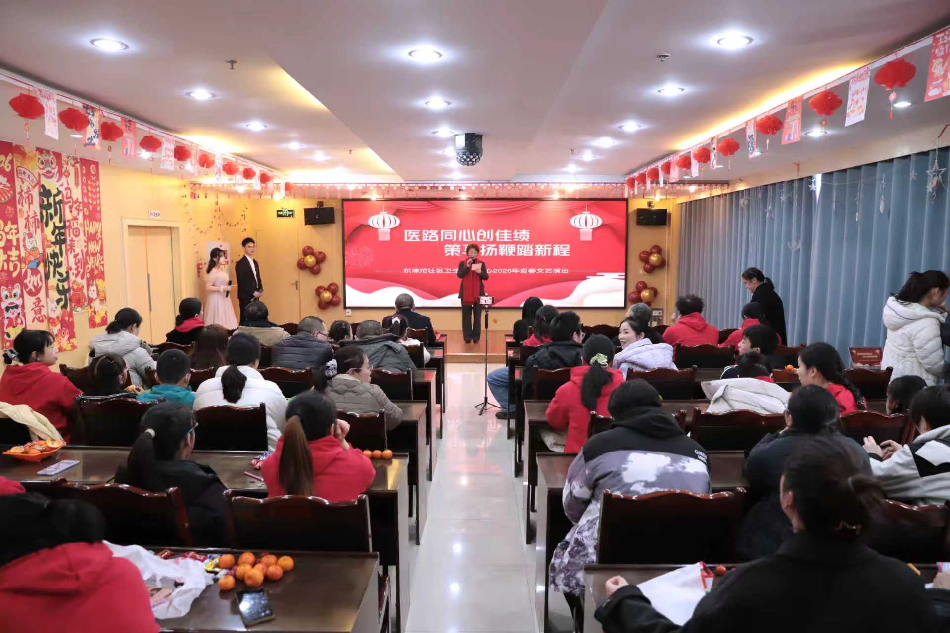 2月13日,东津坨社区卫生服务中心举行“医路芳华·聚力前行”新春联欢会,来自临床、医技的200余名职工脱下白大褂,以歌舞、小品、情景剧等形式共庆佳节。