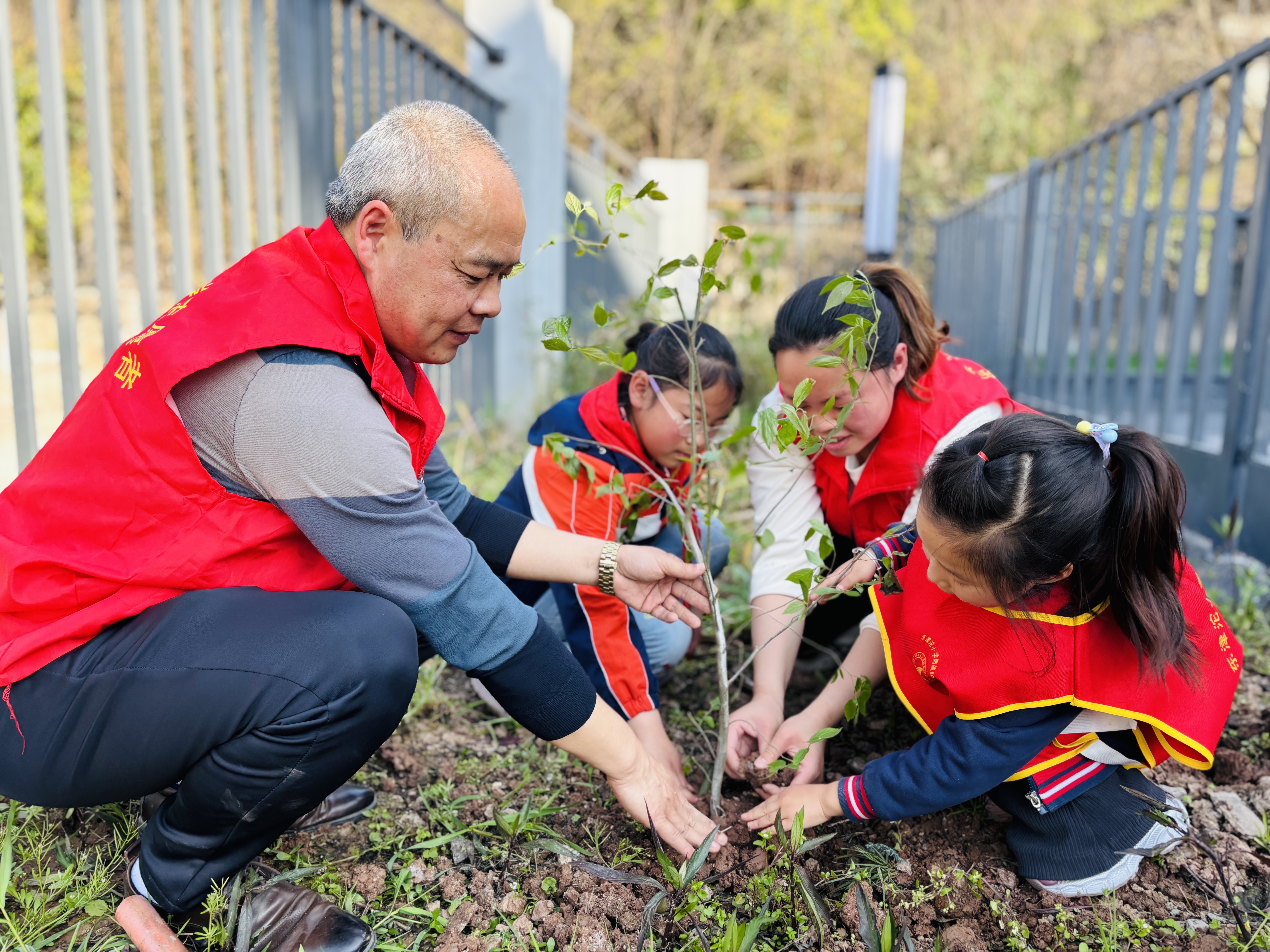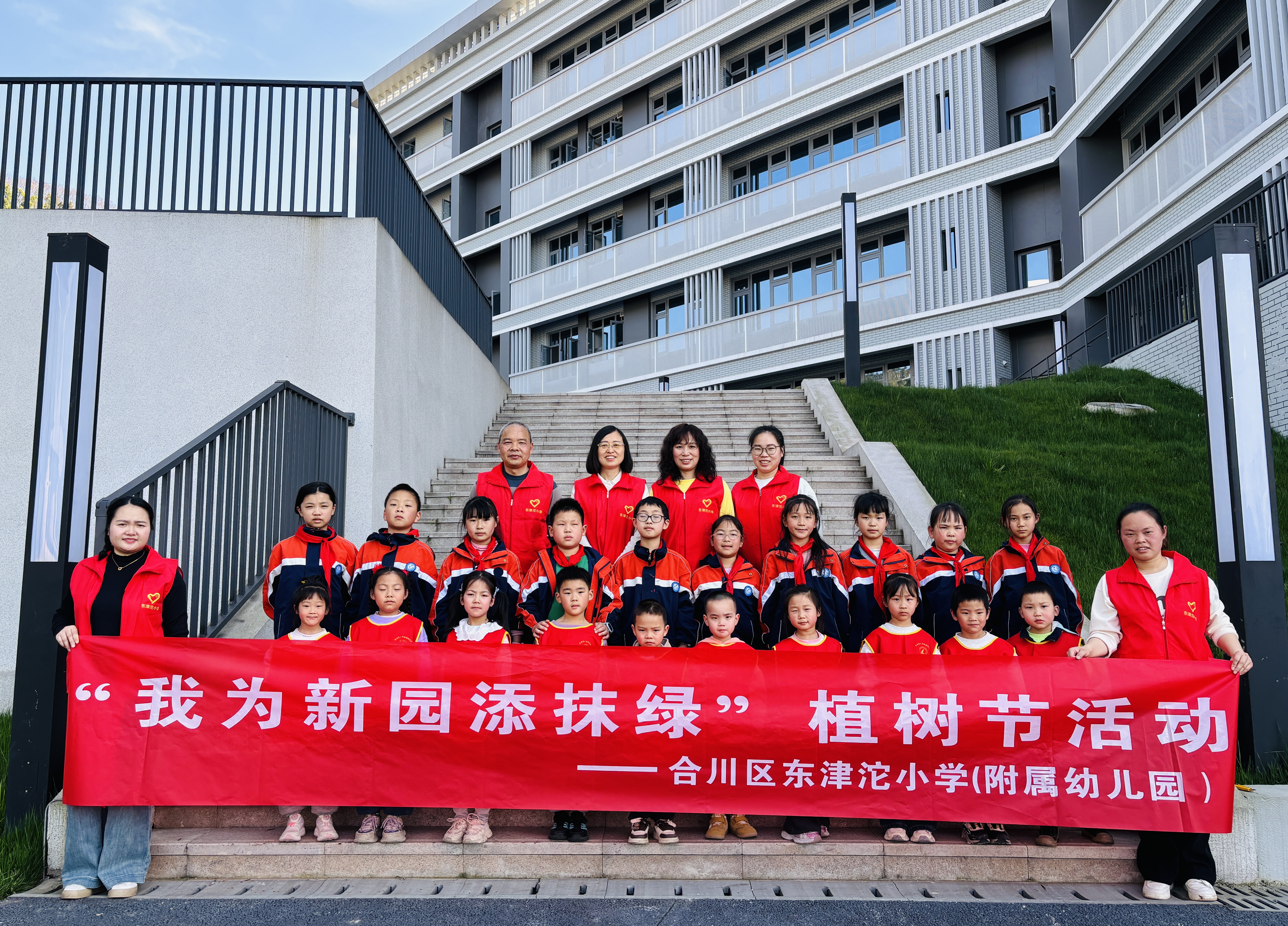 3月12日,在第48个植树节即将来临之际,东津沱小学与东津沱附属幼儿园在新校区联合开展了一场别开生面的植绿种花活动。师生们亲手栽种花木,以实际行动践行生态文明理念,为新校园播撒绿色希望。