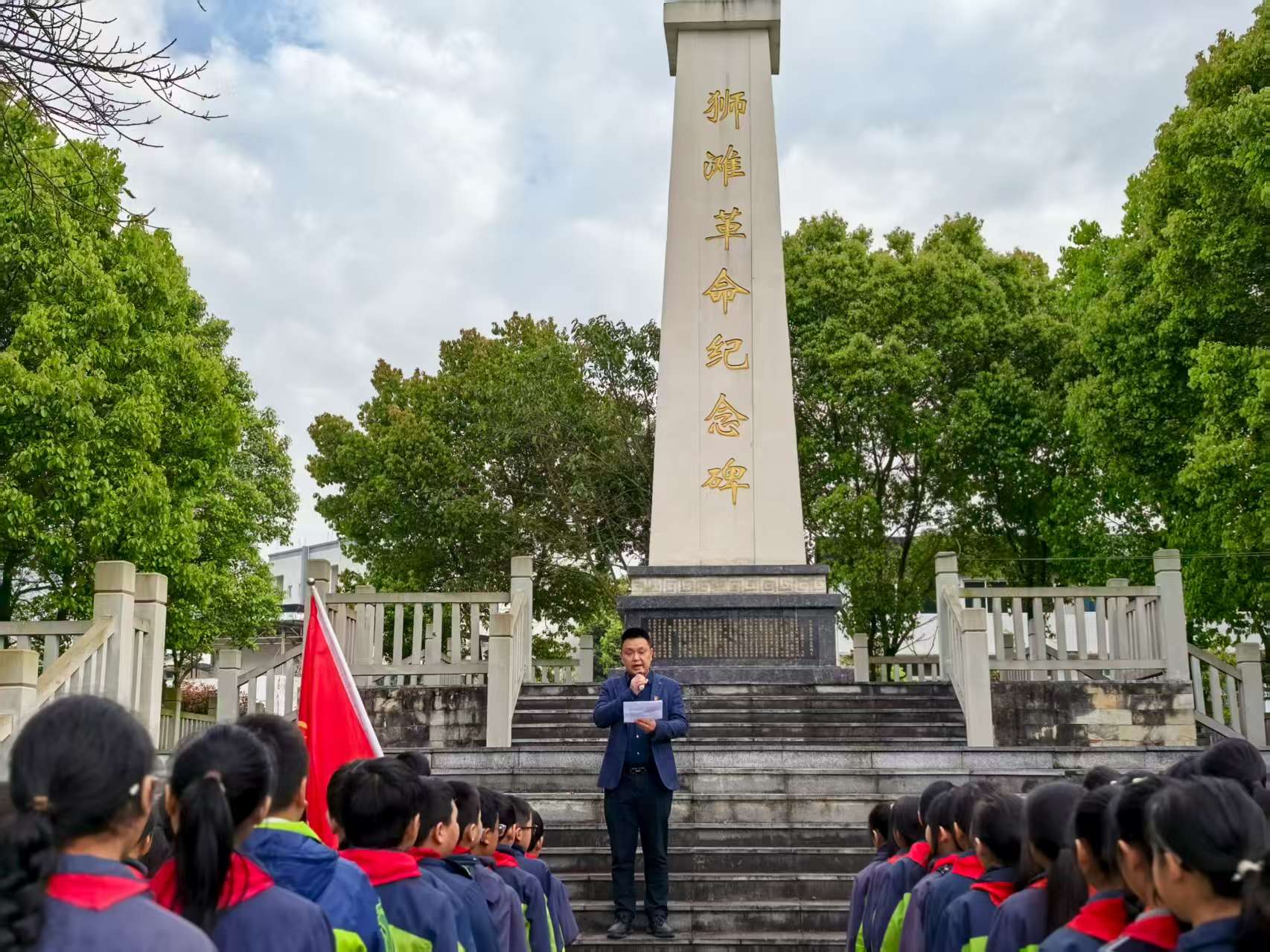 春雨无声表哀思,青松滴翠寄深情。为缅怀革命先烈,传承红色基因,4月2日上午,狮滩小学部分师生前往狮滩镇文化公园开展“赓续英烈精神 争做时代新人”清明祭扫活动。