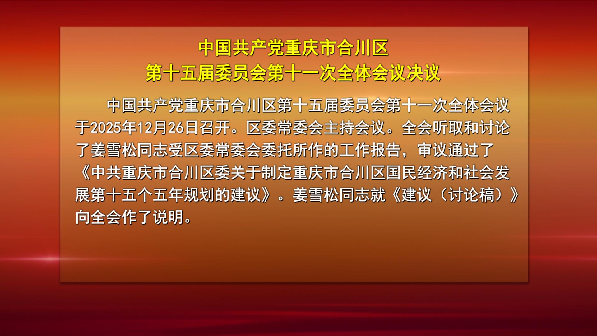 中国共产党重庆市合川区 第十五届委员会第十一次全体会议决议