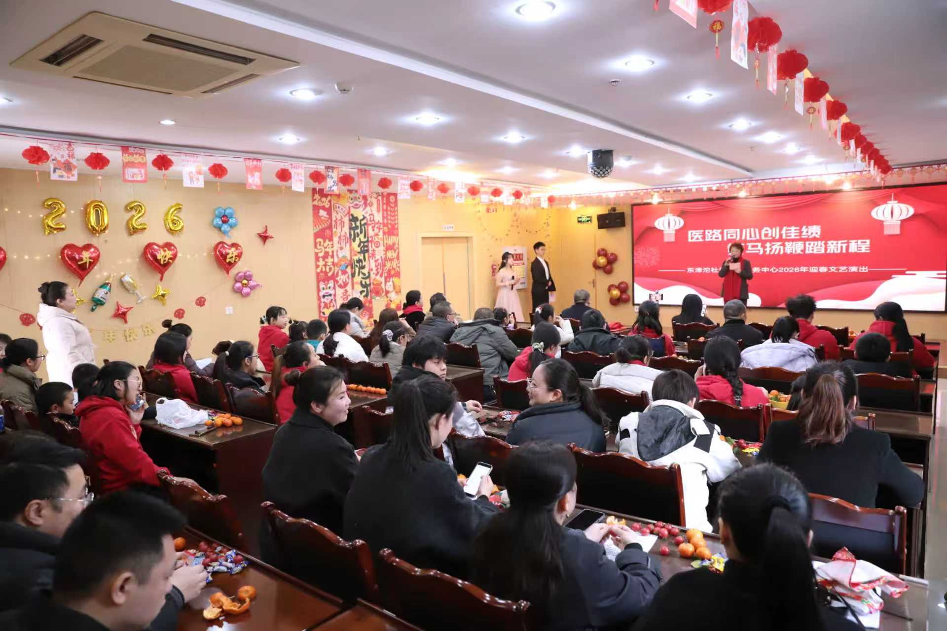 2月13日,东津沱社区卫生服务中心举行“医路芳华·聚力前行”新春联欢会,来自临床、医技的职工脱下白大褂,以歌舞、小品、情景剧等形式共庆佳节。
